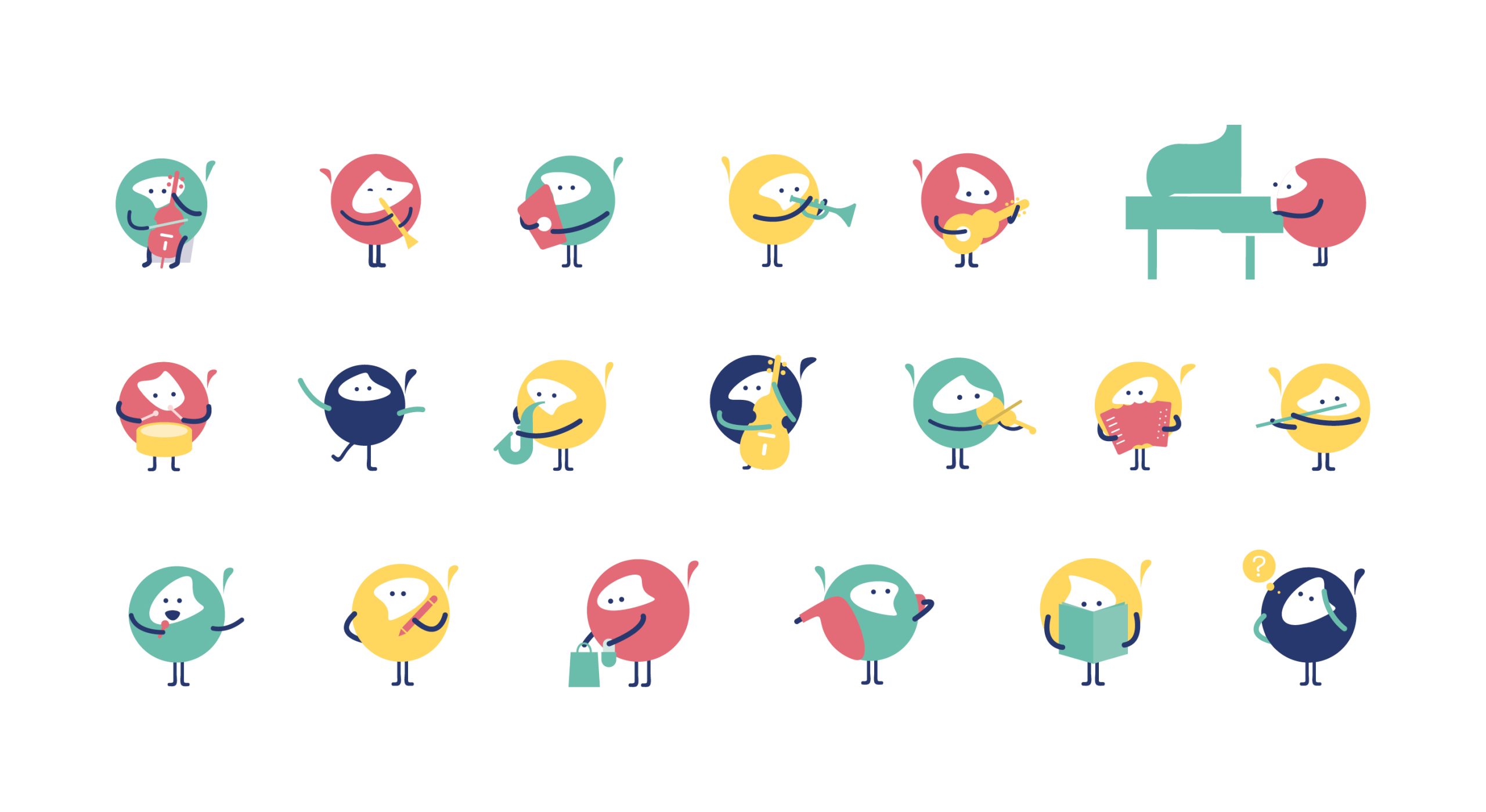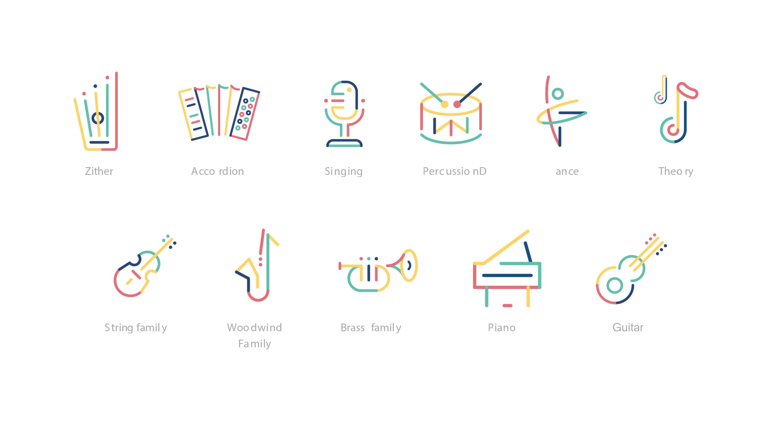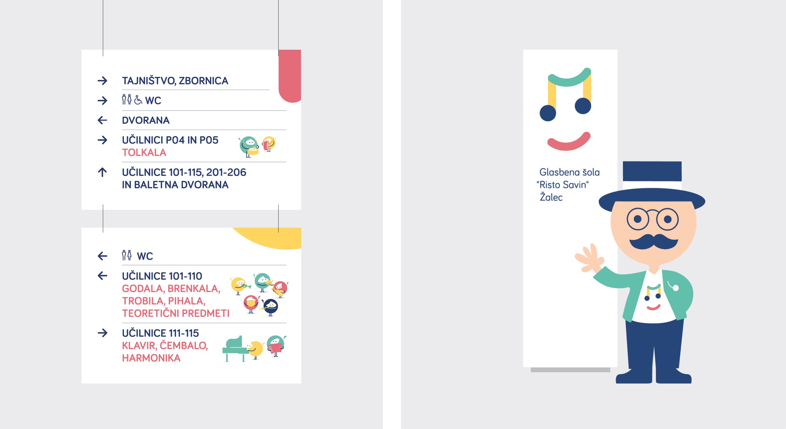 We conducted a complete “visual remix” centered on the universal language of joy. By deconstructing musical notation into a minimalist toolkit of lines, bridges, and circles, we built a modular system that scales from professional signage to whimsical character illustrations. The centerpiece is a dynamic logo—a “smiling note”—paired with a friendly mascot that guides students through the halls, transforming the rigorous study of music into a vibrant, lifelong adventure.